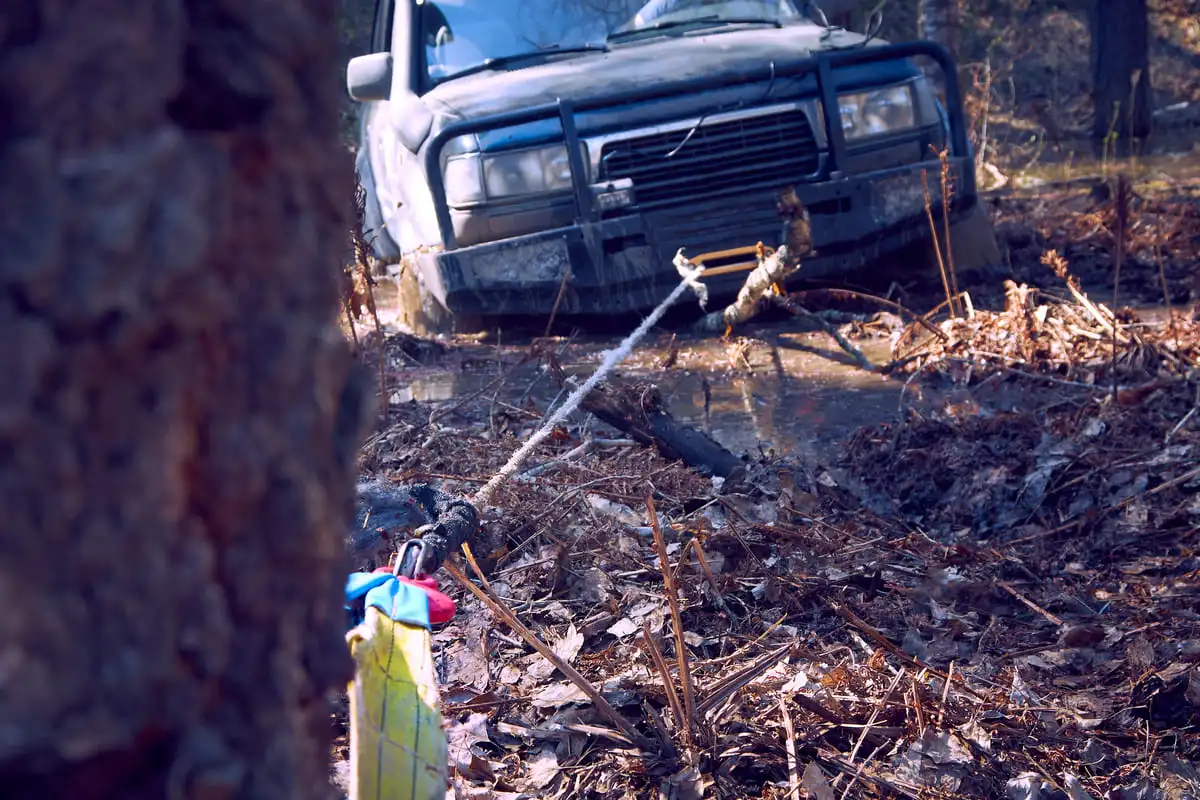 من الطبيعي أن تعلق سيارتك في الوحل أو الرمال العميقة، لأنها قد تُشكّل حصنًا قويًا. يتطلب هذا الموقف ونشًا قويًا، ووزن المركبة الإجمالي (GVW) 1.5x هو الحد الأدنى الذي يجب أن تمتلكه. كما أن الونش المحمول للطرق الوعرة يُشكّل دعمًا جيدًا.