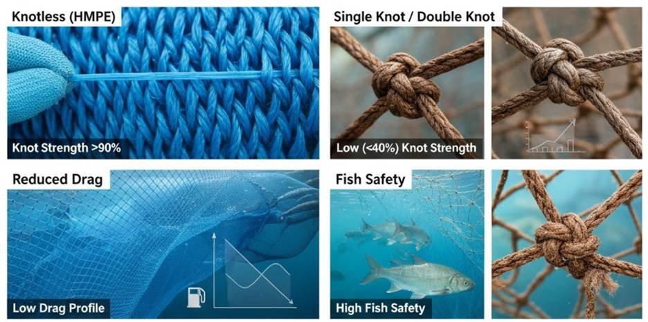 養殖業では魚の安全性が問題となります。無節網は表面が滑らかで、長期間使用しても魚に損傷を与えません。これは、摩耗しやすい節のある網とは大きく異なります。.