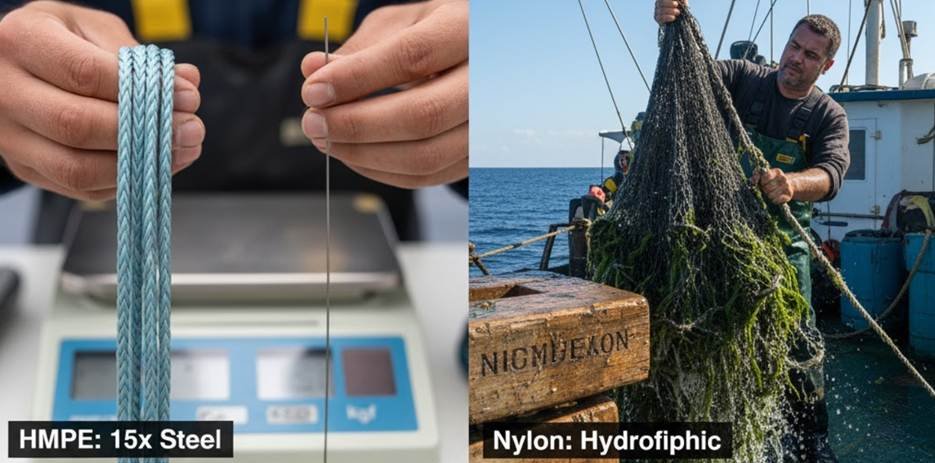 HMPEは保水性がゼロです。水を吸収しません。濡れていても乾いていても、重量は変わりません。これがナイロンとの大きな違いです。.